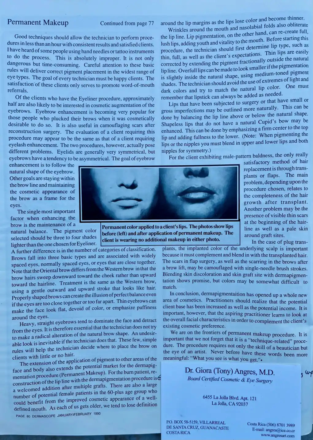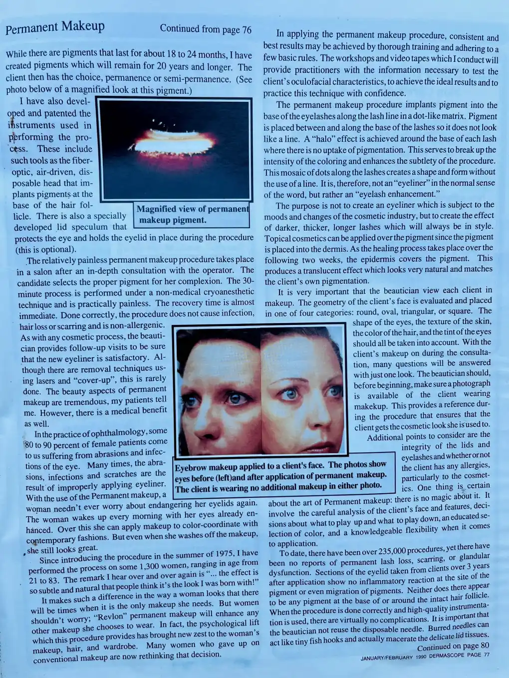 “Permanent Eye Liner”, “Permanent Makeup” and over a dozen articles on
